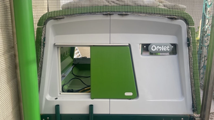 Caption: Automatic chicken flap