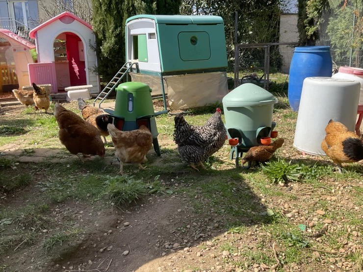 Caption: Eglu, waterer, connected feeder: our chickens are in for a treat!