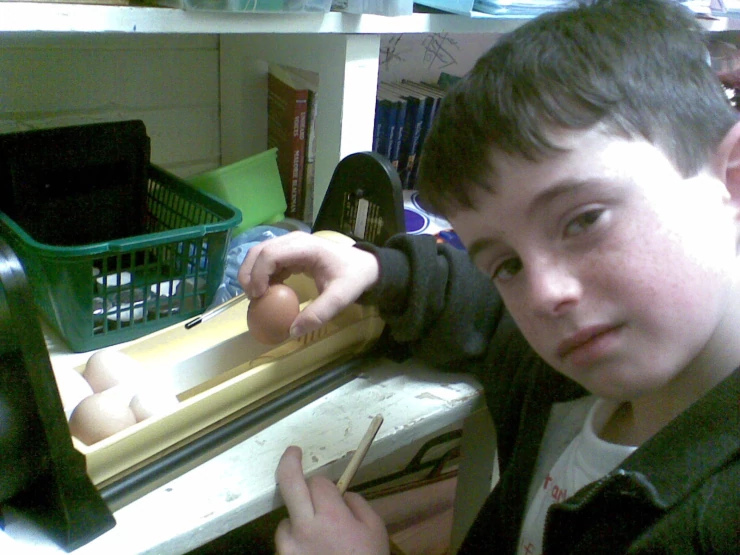 Caption: Kieron loads eggs into incubator