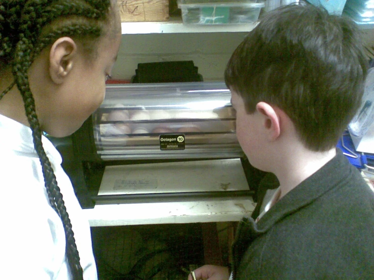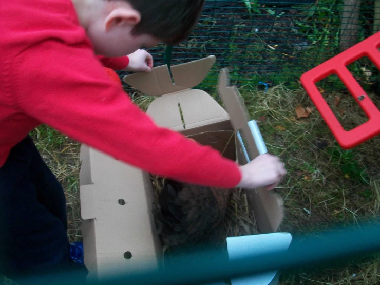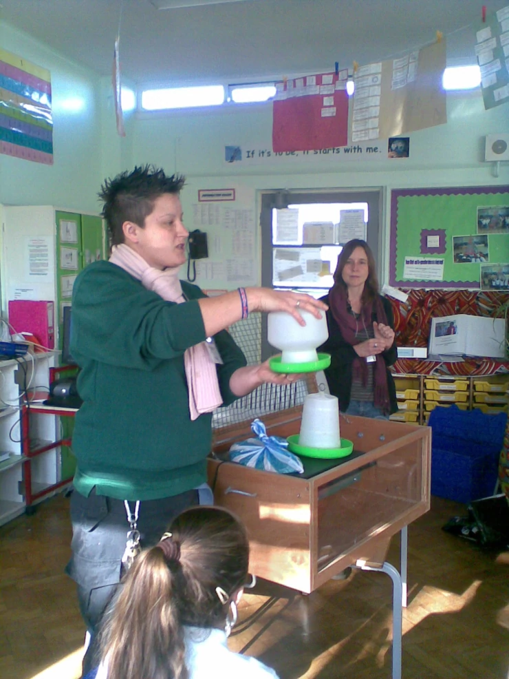 Caption: Explaining how the chicks' first home works...