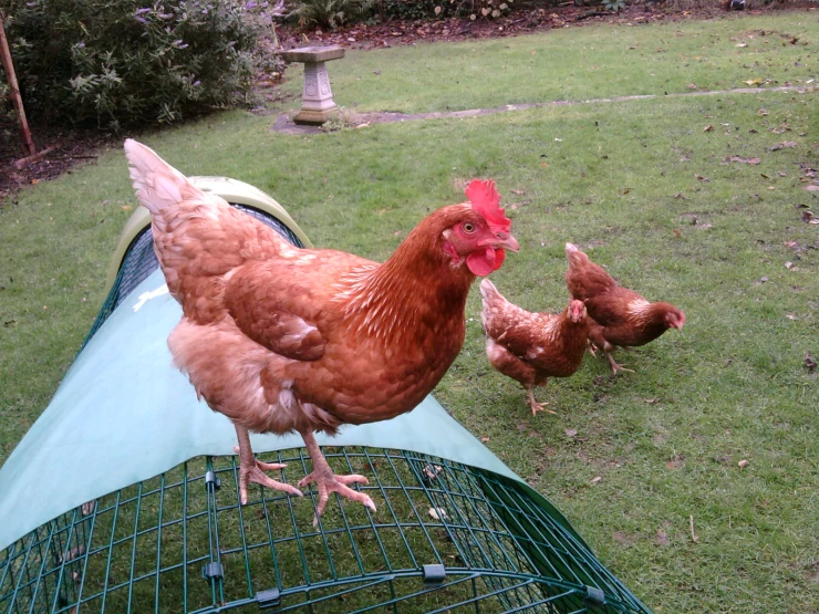 Caption: Pheobe on top of the Eglu, showing everyone whose boss.