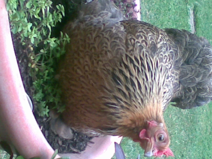 a beautiful hen, she lays beautiful dark brown eggs and she has a very calm and kind nature.