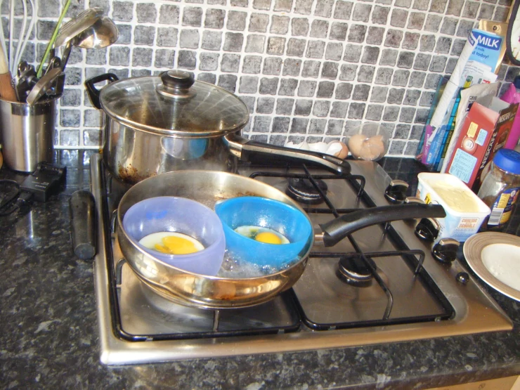 Caption: Our first eggs being poached, 4 bantie eggs.