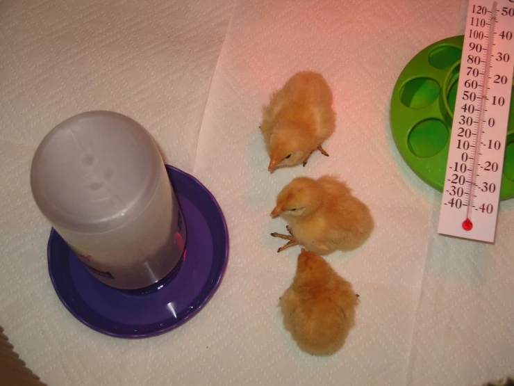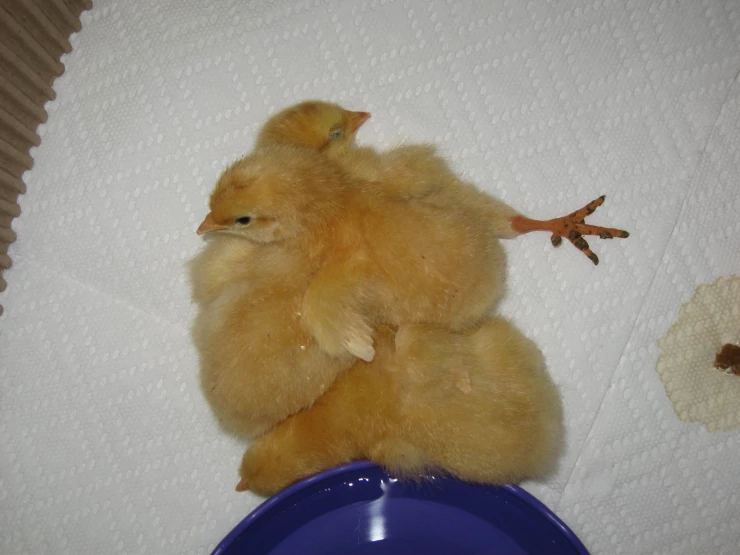 Caption: My long awaited 3 buff orpington chicks just placed in the brooder april 8 2009