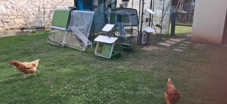 Caption: Eglu, waterer, connected feeder: our chickens are in for a treat!